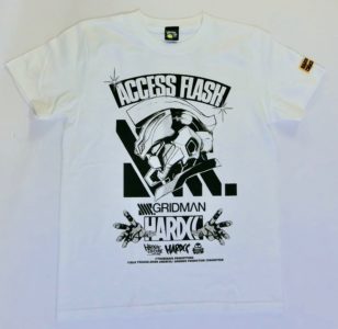 アパレル界の悪童!ハードコアチョコレートとのコラボレーションTシャツは、眩しいホワイトボディ仕様!デザイン内に組み込まれた、「ACCESS FLASH」の文字が輝く!あの時の未来が現実になった2018年、グリッドマンがアニメーションの世界とTシャツで蘇る!さぁ今すぐ手にしよう!