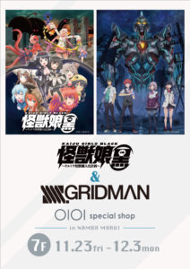 アニメ「怪獣娘(黒)~ウルトラ怪獣擬人化計画~」の期間限定劇場公開、及び「SSSS.GRIDMAN」のTVアニメ放映を記念して、『怪獣娘(黒)&SSSS.GRIDMAN special shop inなんばマルイ』を7Fイベントスペースにて期間限定オープン!